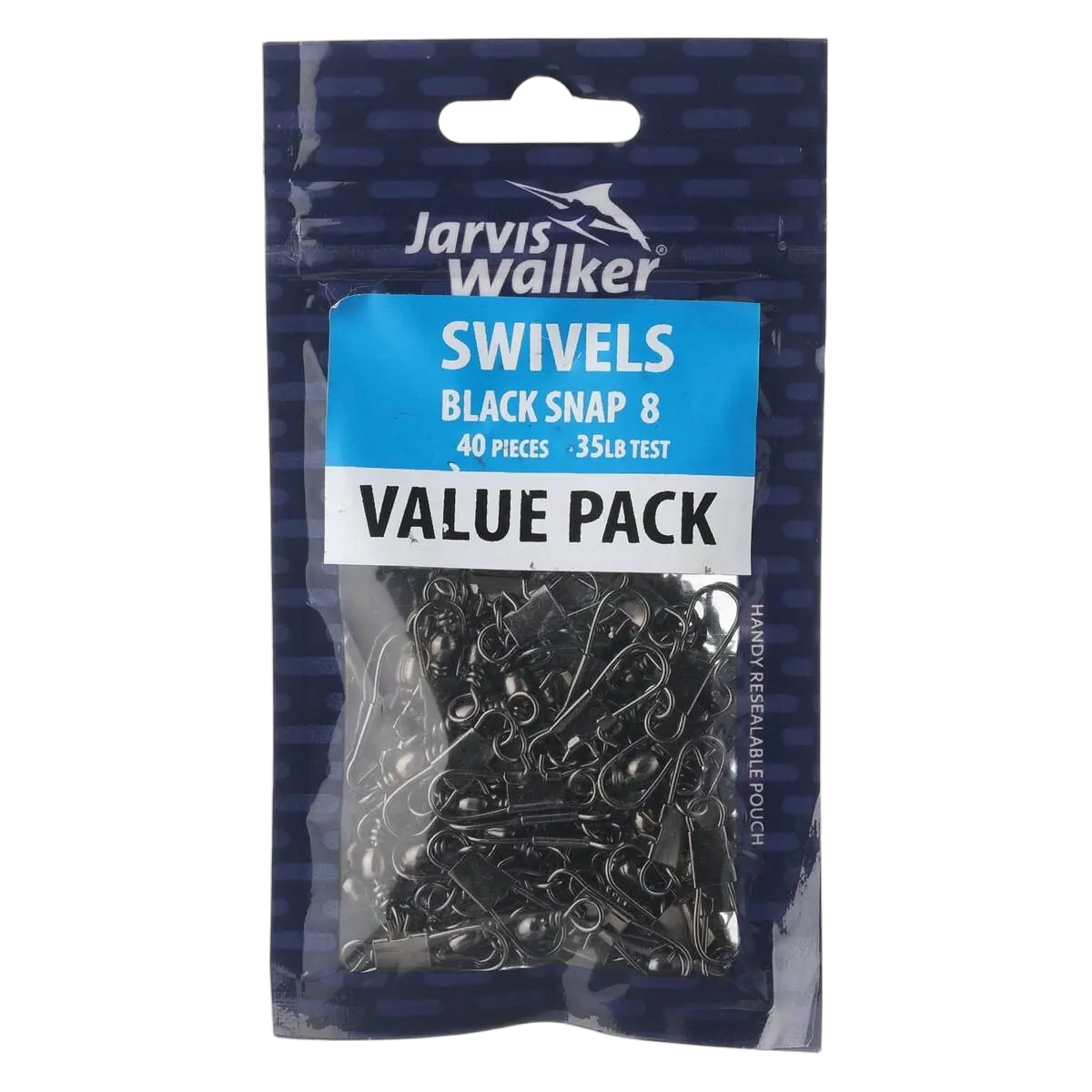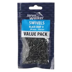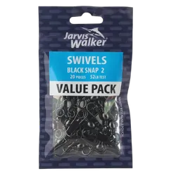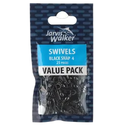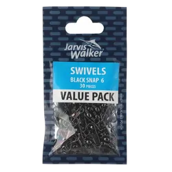 Classic black barrel swivels are combined with a snap that enables quick leader replacements. They can be tied to the end of leaders for quick lure replacements, or used as rigging ends for wire traces. They are black to minimise light reflection.