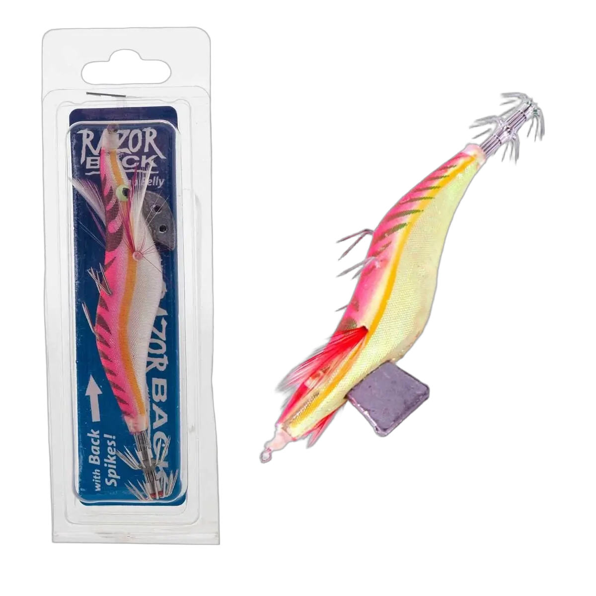 LUMO SQUID JIGS AT GREAT PRICES! Lumo colours are all the rage among squid jiggers because they work! Jarvis Walker Razorback Squid Jigs have four squid-attracting lumo colours in each of the size 3.0 and 4.0 models. Razorback Squid Jigs are arguably the best value squid jigs in the country, try them next time you want the freshwater live squid baits, or calamari rings!