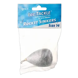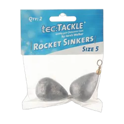 Rocket Sinkers sink fast and are ideal for bottom fishing deep water with paternoster (dropper) rigs. The round, wide, bulbous base thins towards the top where a brass swivel is fitted as an attachment point. You can attach, remove or change your sinker easily using a loop knot tied at the end of your line; simply thread the loop through the eye of the swivel, then push the sinker through the loop and tighten the line, so the loop wraps around the swivel eye. Reverse that process for quick sinker removal. Some anglers use rocket sinkers running along the main line between hook and swivel, or two swivels or rings.