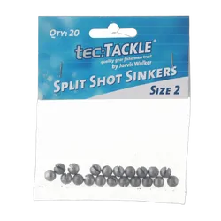 Split shot sinkers are very useful when fishing light in streams or estuaries. Many anglers also use them when float fishing to balance their floats and hold the bait down where the fish are. Split shot sinkers have a 'split' in one side that you fit your line into; and then you squeeze the sinker with pliers, closing the split around your line to fix the sinker in that position. The sizes are small enough that you might attach or remove several split shot sinkers to achieve and/or maintain the perfect weight as conditions change