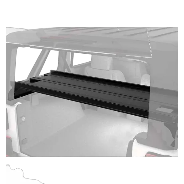 This is the only interior jeep storage rack available that is designed to fit a standard sized vehicle refrigerator underneath. (For easy fridge access, see our Front Runner Fridge Slides, or our brand new Front Runner JKU Cargo Slide.)