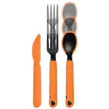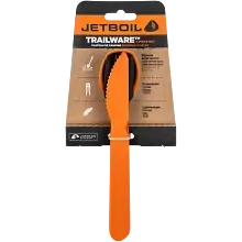 The perfect outdoor utensil set. Forget about the mess and hassle of cleaning on the trail. The new Jetboil TrailWare is designed to easily extend and reach inside a Jetboil cookpot or dehydrated meal package. The unique silicone edge spoon will easily scrape every morsel while minimizing scratches to the pot surface. All three utensils snap together for easy storage and transport.