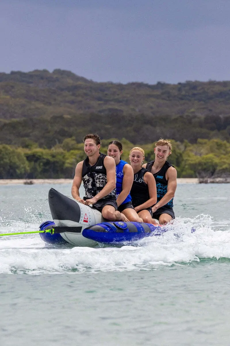 Take your water fun to new heights with the Jetpilot Blast Off 4 Towable Tube. Perfect for up to four riders, this inflatable towable tube is all about combining durability, safety, and epic fun. Whether you're looking to catch some air or just cruise the waves, this 4-person towable tube is your ticket to an unforgettable ride. Grab yours today and get ready to blast off!