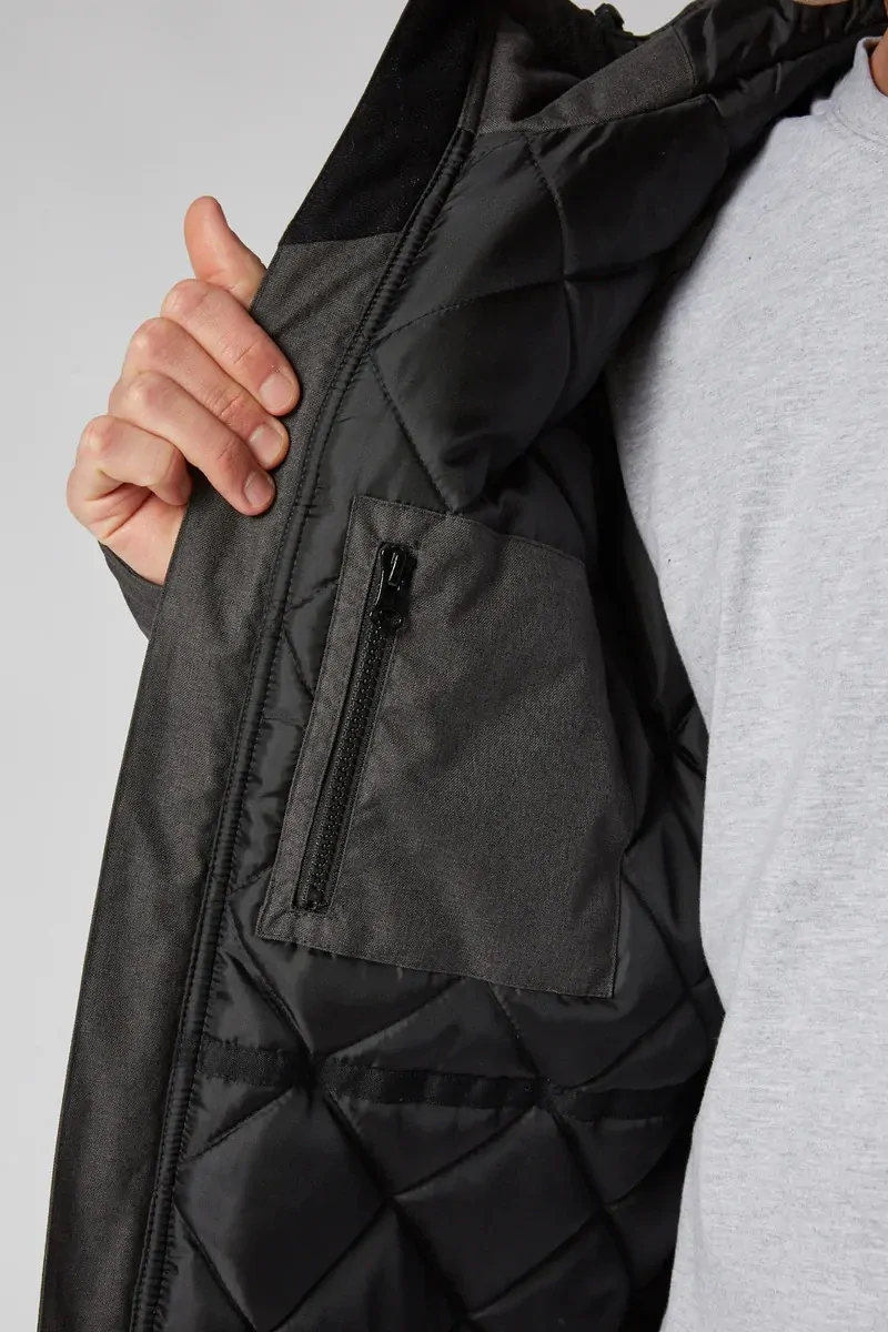 The Jetpilot Onsite Pro 2.0 Mens Jacket is made of 100% polyester cotton twill and features a polyester padded body for maximum protection and comfort. The jacket's internal body and hood lining add an extra layer of insulation, making it perfect for outdoor activities in colder weather.