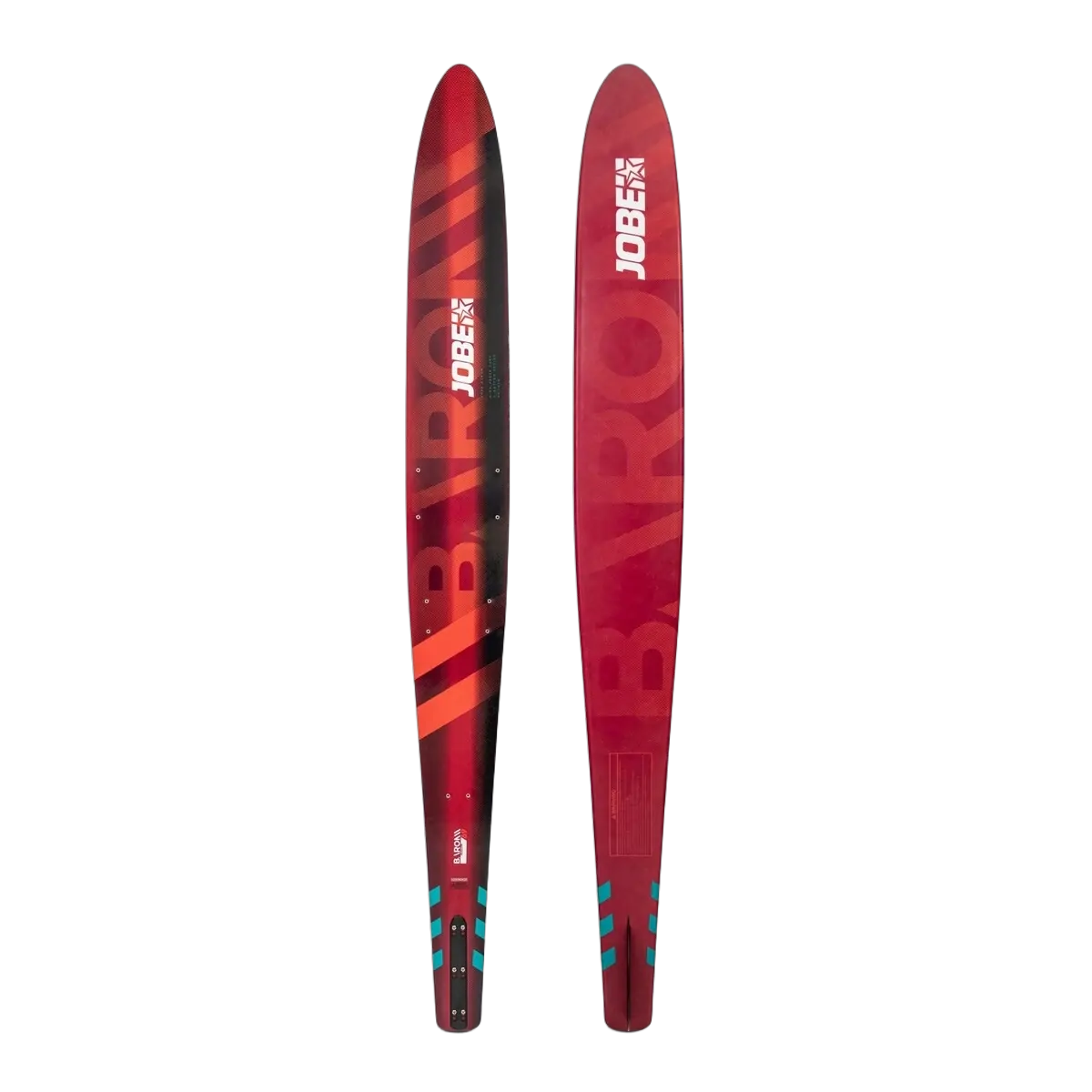 The Jobe Baron slalom ski has been designed for carving and intermediate level slalom skiing. Jobe engineered the Baron with a slightly narrower tail which makes initiating turns easier because the back of the ski lays deeper in the water. This ski makes use of an edge-to-edge concave. This traditional slalom ski generates a true edge holding capability without reducing control due to a three-stage rocker. Binding not included!