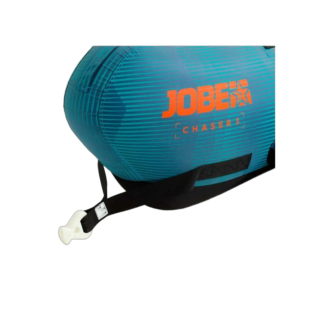 The Chaser 3 person towable tube is a serious towable to ride with a friend or family member. Its tough 840 nylon double-stitched cover protects the 28 gauge PVC-base and the tube from damaging. Hold on tight to its comfy and super strong nylon-wrapped handles with luxurious neoprene knuckle protection. Features a one way valve and quick connector for convenience.