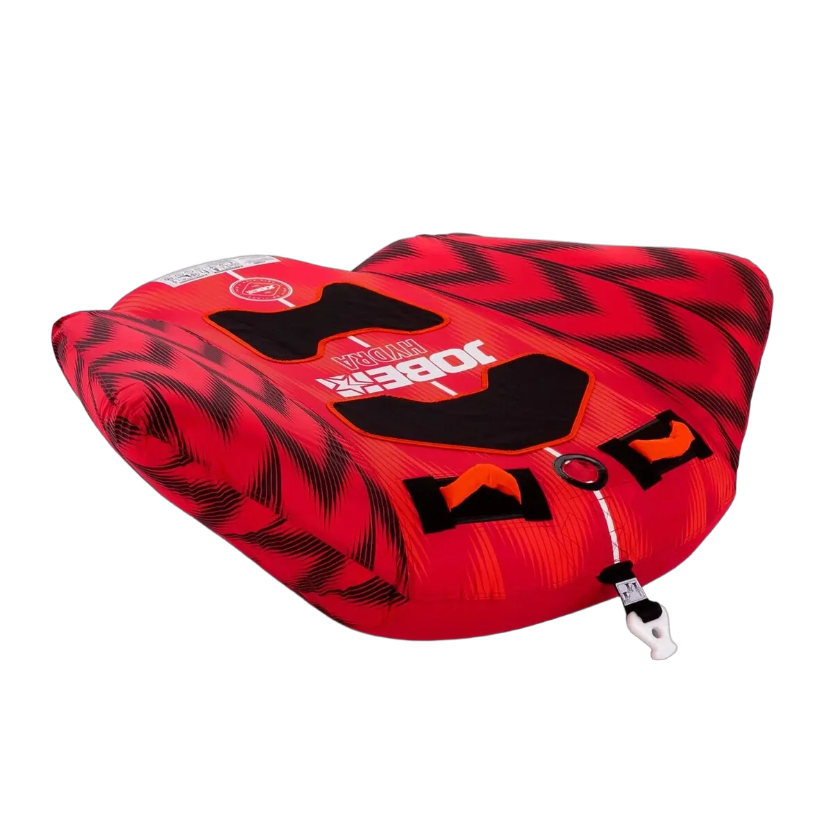 This 1 person towable is one of the fastest around. Jump & fly safely with its PVC-inside and a rough double-stitched nylon outer-layer. The Hydra is shaped-super-sharp, allowing you to reach top speeds. It's quick rope connector is as fast as you, and makes easy connection and detachment possible. Hold on tight to the 2 comfy neoprene knuckle guards.