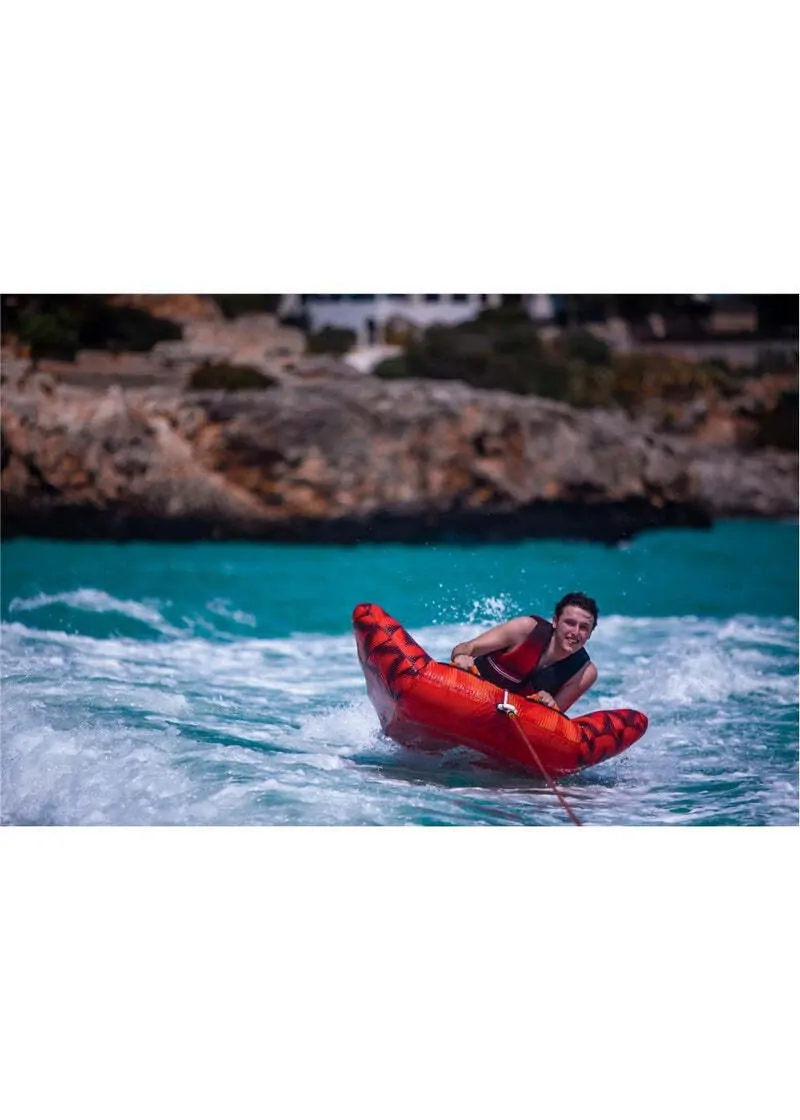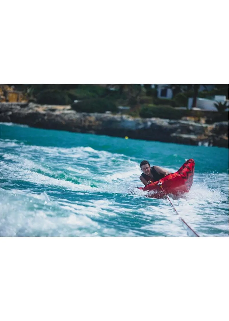 This single-person towable is one of the fastest around. Jump & fly safely with its PVC-inside and a rough double-stitched nylon outer-layer. The Hydra is shaped-super-sharp, allowing you to reach top speeds. It's quick rope connector is as fast as you, and makes easy connection and detachment possible. Hold on tight to the 2 comfy neoprene knuckle guard. A full package consists of a electric 12V pump and towable rope.