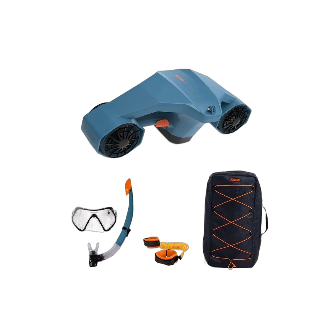 The Jobe Infinity underwater Sea Scooter With Bag And Snorkel re-invents fun below the water surface! This self floating, electrically powered underwater seascooter zooms you around to explore the shallows or the depths up to 30 meters. The sea scooter is powered by a long battery you can explore the depths for up to 40 minutes. And with two batteries included you can explore twice as long! Additionally the Infinity Sea scooter features three speeds for cruising around slowly or at a brisk pace! Capture the views like never before with the built in GoPro mount to make your memories last forever. The Jobe Sea scooter will be your new favourite snorkelling gear.