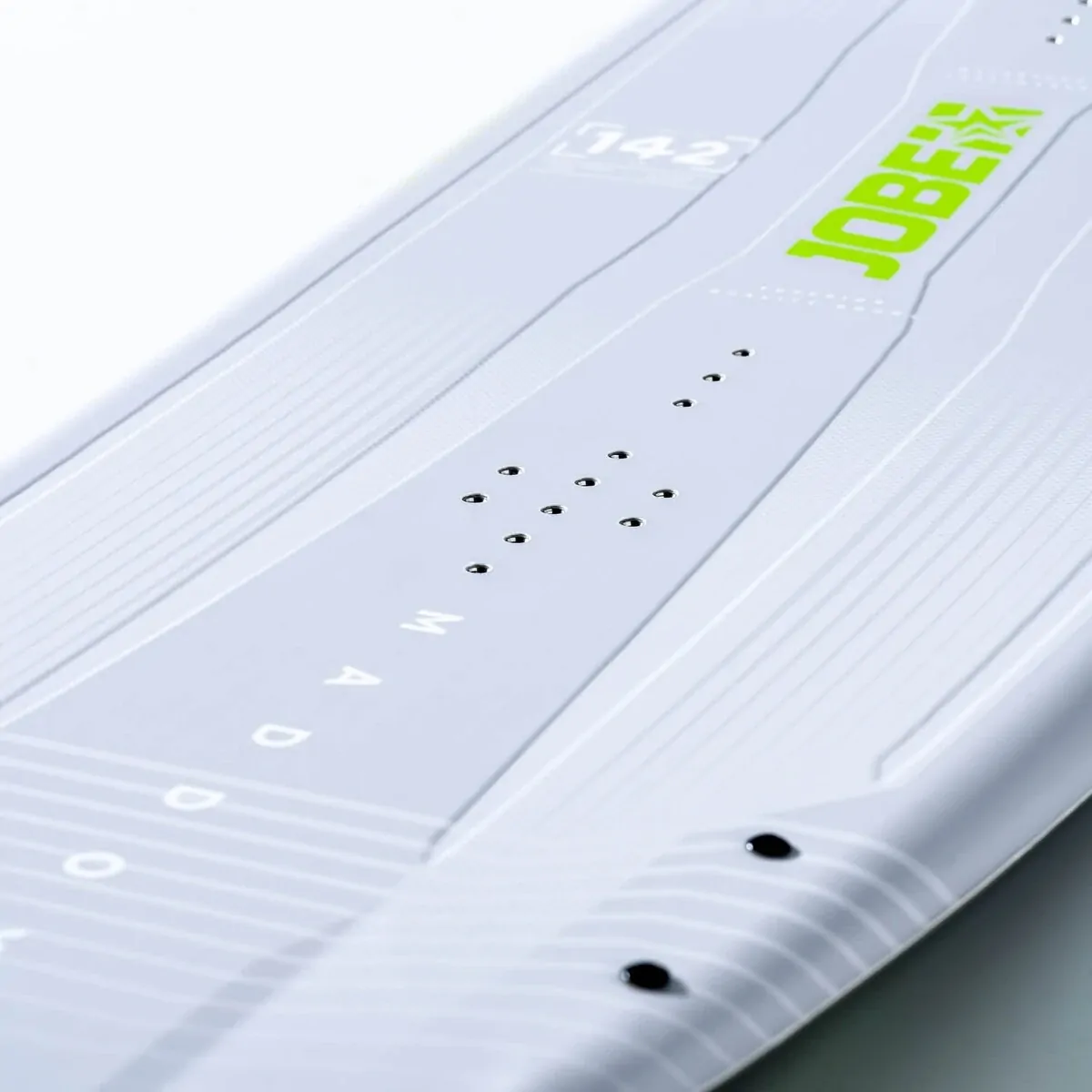 The Jobe Maddox Wakeboard has been one of our flagship models for years now! A board with a competitive edge and loved amongst boat riders for it's aggressive pop! But this year, we made a change for the better with our new indent technology. A laser cut-out in the topsheet creates not only new esthetics but also adds stiffness to the board. This results in an even better response and feel to the board! This board has been loved by both the intermediate and advanced riders but for this year it just got a whole lot better!