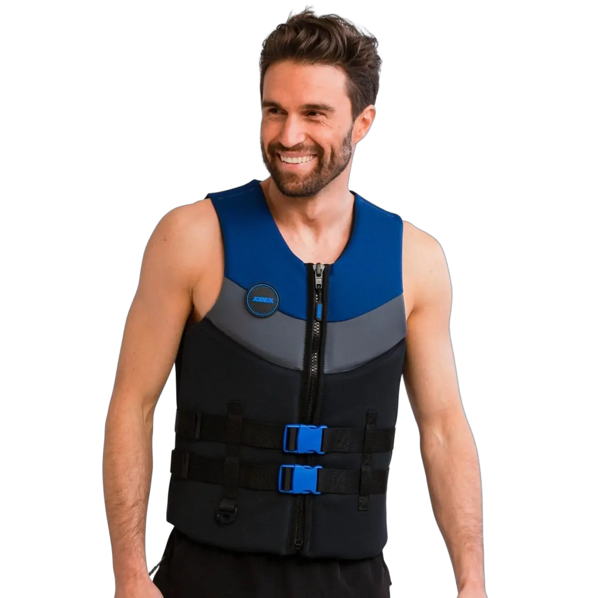 The Jobe Neoprene vest for men has been made from the softest, most comfortable neoprene around. This vest has been outfitted with a YKK front zipper, strong YKK buckles and adjustable webbing straps. Soft PVC-foam sets a new industry standard and makes this 50N ISO-certified vest super soft, flexible and comfortable. An emergency cord can be attached to the D-ring on the front of the vest.