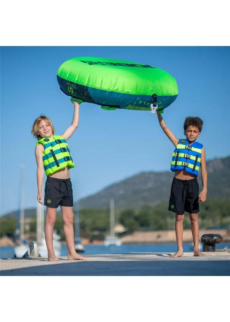This 50N ISO-certified quick drying nylon kid's vest is manufactured with lightweight EPE-foam. The Nylon Vest Youth got treated on a fresh redesign including colored webbing straps, a new logo badge and a graphical update. The outside is fully covered in lightweight and nylon for durability, season after season. The bright color on this vest makes sure your little ones are visible in the water at all times, while a water drainage system drains the water quickly. Three strong YKK buckles and adjustable webbing straps ensure excellent fitting.