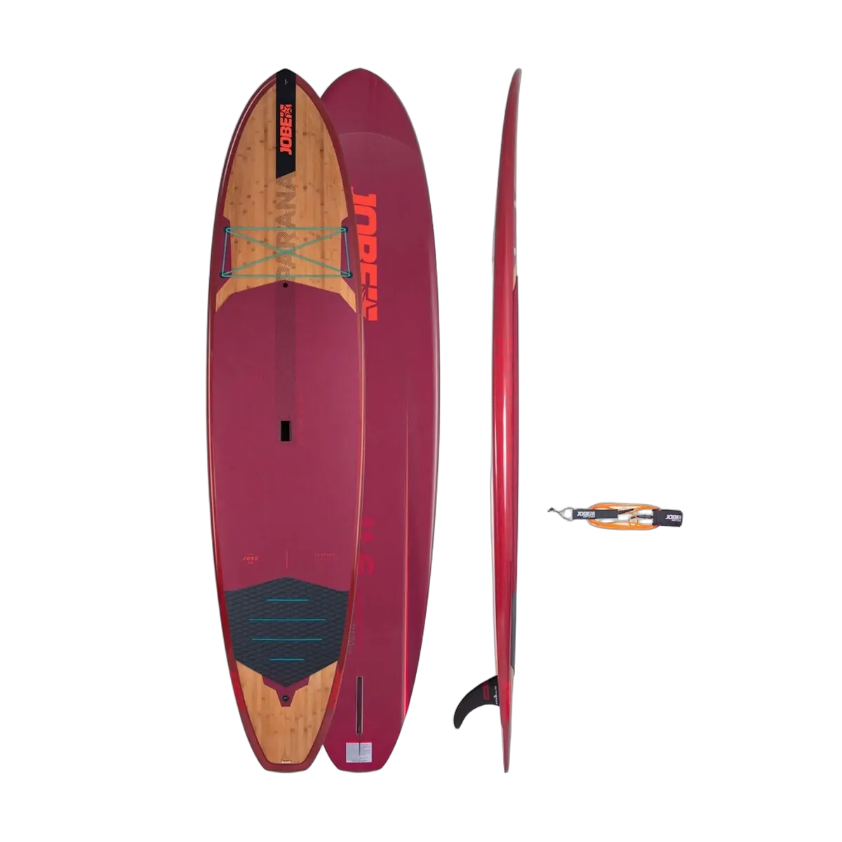 The Jobe Parana 11.6 has deep channels to obtain extra speed, tracking and stability. This makes her perfect for an expedition and strong enough to take with you whatever you love under the bungee cord. With a thickness of 5'', buoyancy is guaranteed and stiffness is added while remaining control. Moreover, a 9'' single fin keeps the Parana on track while you taking the lead. An ergonomic carry handle makes carrying the lightweight board even easier. Little extra: get a SUP leash straight 10 ft green and a rail saver, too.