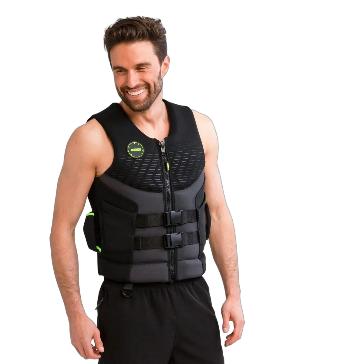 The Jobe Premium Neoprene Life Vest Men is back with a full redesign and the vest is packed with new innovations to give you the safe ride you need while feeling fully comfortable. We have optimized this vest to the recreational PWC driver who likes to take some company on board. This PWC vest is provided with an ISO certified 50 Newtons buoyancy rating and we have placed two extremely strong side handles to keep not only you, but also your passenger safe. Next up this vest is provided with upgrades as side pockets, a 3D hydration mesh fabric and a supportive waist belt. Finally, our ‘Perfect Fit' philosophy always guarantees a vest that fits you perfectly.