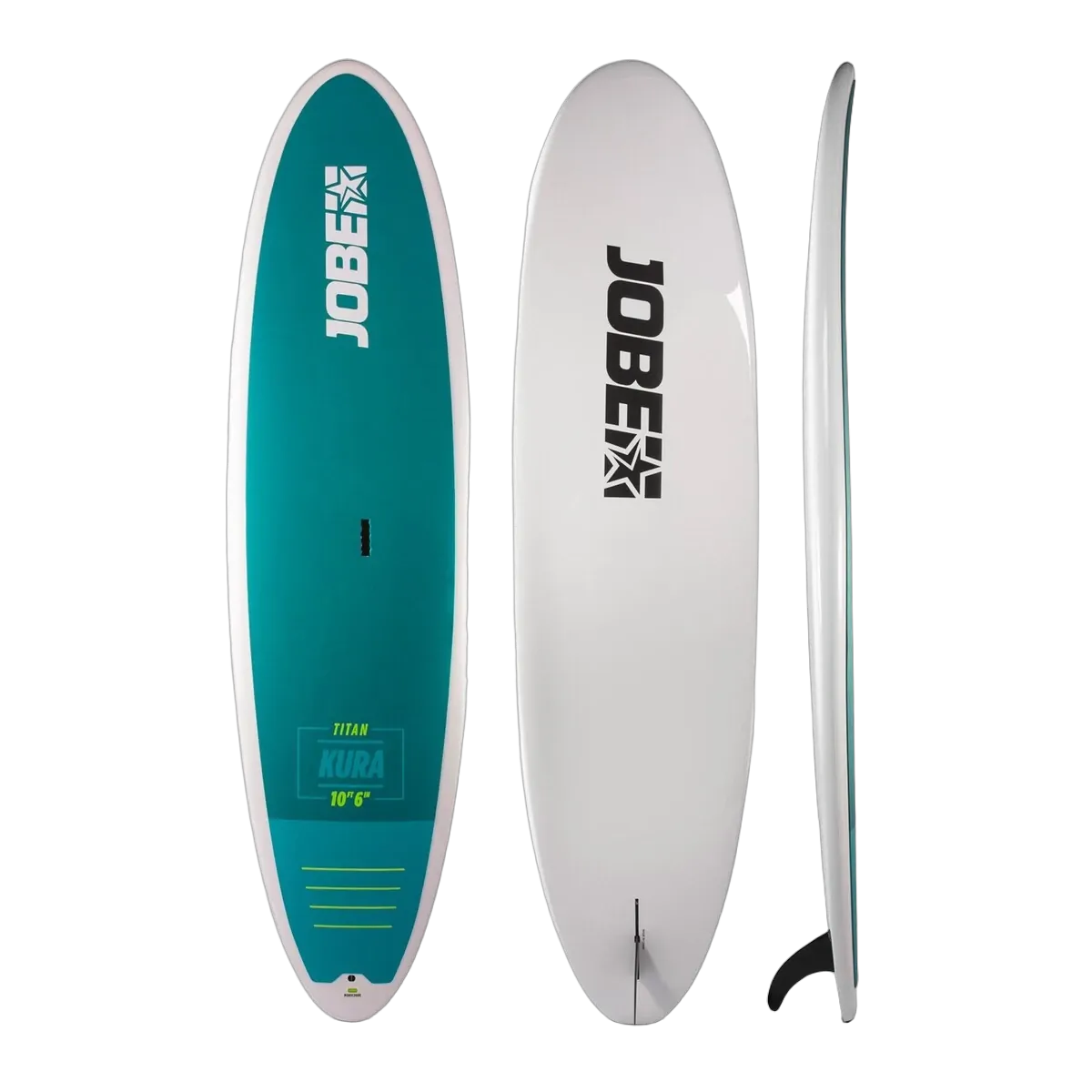 As strong as titanium: The Titan Kura 10.6 is one of our 3 superSUPs of the Titan series. The Titan series is forged of elements resulting in a ultra-strong SUP board. The Titan Kura 10.6 can handle heavy impact has one of the highest levels of buoyancy due to a durable EPS core wrapped in a monocoque fiberglass layup. Blended together with the world's strongest polycarbonate shell - created with vacuum molding - the Titan is engineered to handle heavy impact. A soft and grippy full EVA - deck pad offers even more protection, so you can nail your water sport goals season after season. These are the world strongest SUP-boards, to withstand all impacts.