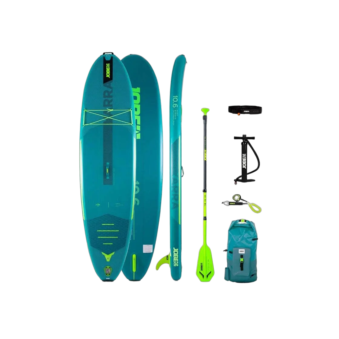 The Aero Yarra stand up paddle board 10.6 package is a prime example of where form meets function! Featuring an all-new "EZ Lock Fin" and high quality construction and durability using our heat bonded technology; this Aero Yarra SUP is the perfect all-around board for adventure on the water. The Inflatable Yarra is packed with great features like our lightweight X-Stitching Technology and a stringer built in to the top and bottom of the SUP board for added stiffness. The package includes everything you need to start your journey and with a total board weight of 9.3kg you can take your adventure anywhere!