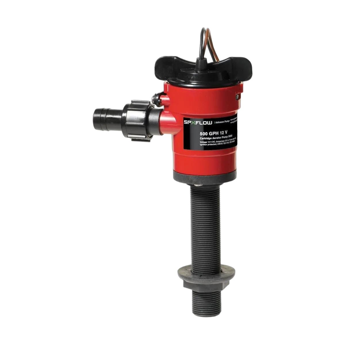 Livewell pumps in 500 GPH and 750 GPH capacities with two different intake configurations of straight and 90°. Smaller profiles to fit in more confined spaces. Easy to change motor cartridge.