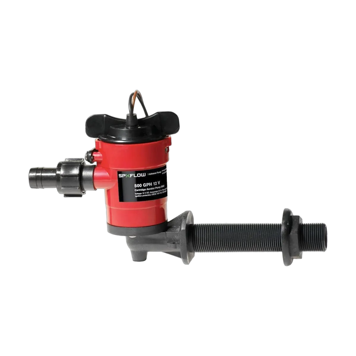 Livewell pumps in 500 GPH and 750 GPH capacities with two different intake configurations of straight and 90°. Smaller profiles to fit in more confined spaces. Easy to change motor cartridge.