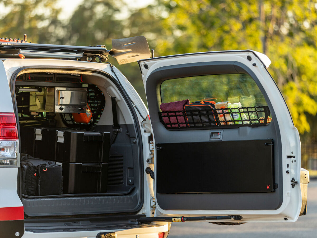 Maximise storage space on your rear door with a Rear Window Basket that takes advantage of the Prado's recessed window. Perfect to store soft items like towels, wipes, jumpers, loo paper and more. Install on its own or with other Rear Door products for the ultimate rear door set up.
