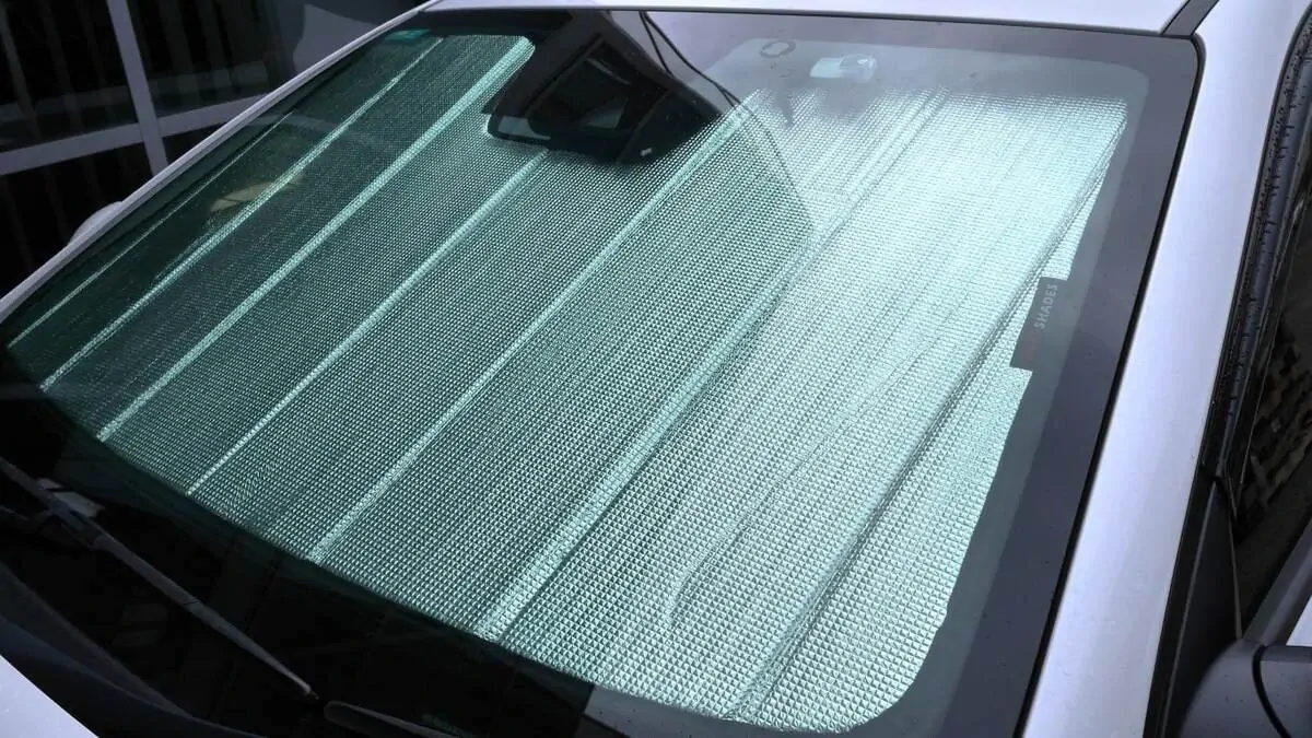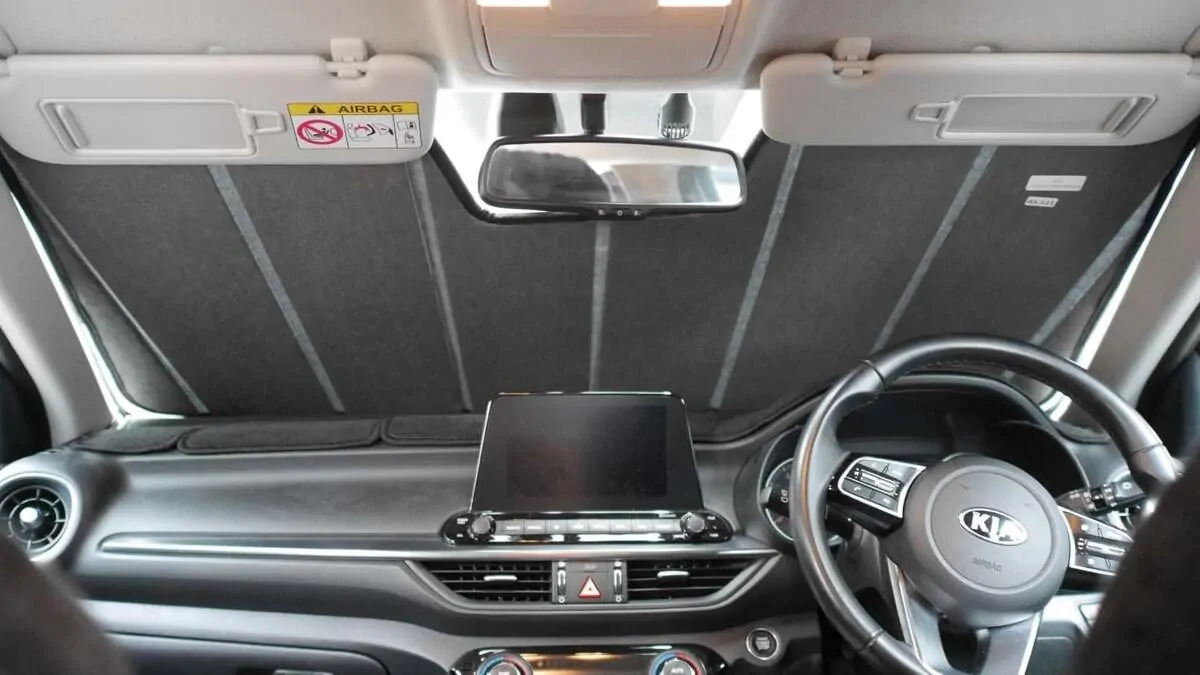 Note: Our custom sun shades block out a significant amount of light and UV rays that enter from the front windscreen, however due to the angle of the front windscreen and additional sensors or different mirror shapes/sizes available for different models, there may be slight gaps around your rear-view mirror or sides to allow the sun shade to fit.