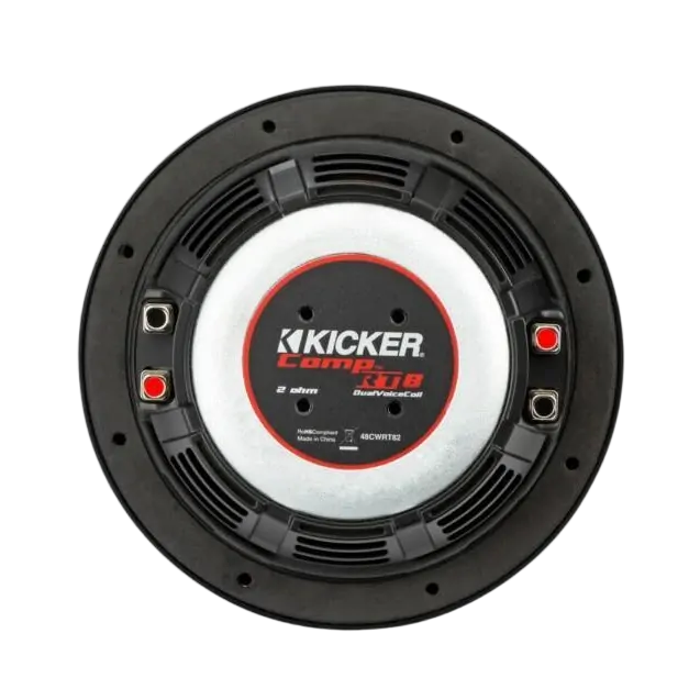Specifications Thiele/Small Parameters 48CWRT84 T/S Parameters SIZE [in, cm]: 8, 20 IMPEDANCE [Ohms]: 4 DVC Recommended Amplifier Power (watts RMS) 300 Peak Power (watts, per ANSI/CTA-2031-A) 600 SENSITIVITY [dB 1w/1m]: 81.8 MOUNTING DEPTH [in, cm]: 2-11/16, 6.7 MOUNTING DIAMETER [in, cm]: 7, 17.7 MIN SEALED BOX VOL [cu. ft, L]: 0.2, 5.66 MAX SEALED BOX VOL [cu. ft, L]: 1.0, 28.32 MIN VENTED BOX VOL [cu. ft, L]: 0.8, 22.7 MAX VENTED BOX VOL [cu. ft, L]: 1.2, 34 *Assumes typical music program with minimal amplifier clipping; varies with enclosure size. See your KICKER dealer for details.