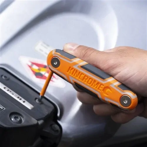 Each hex key is manufactured from Chrome Vanadium Steel (Cr-V) hardened and chrome plated with a powder coat finish for rust protection. This all-in-one unit is complete with handy folding storage for an extra level of organisation and ease of use. The durable folding storage includes moulded grip sections for increased grip and a chrome plated centre plate for increased rigidity and durability, allowing for increased torque.