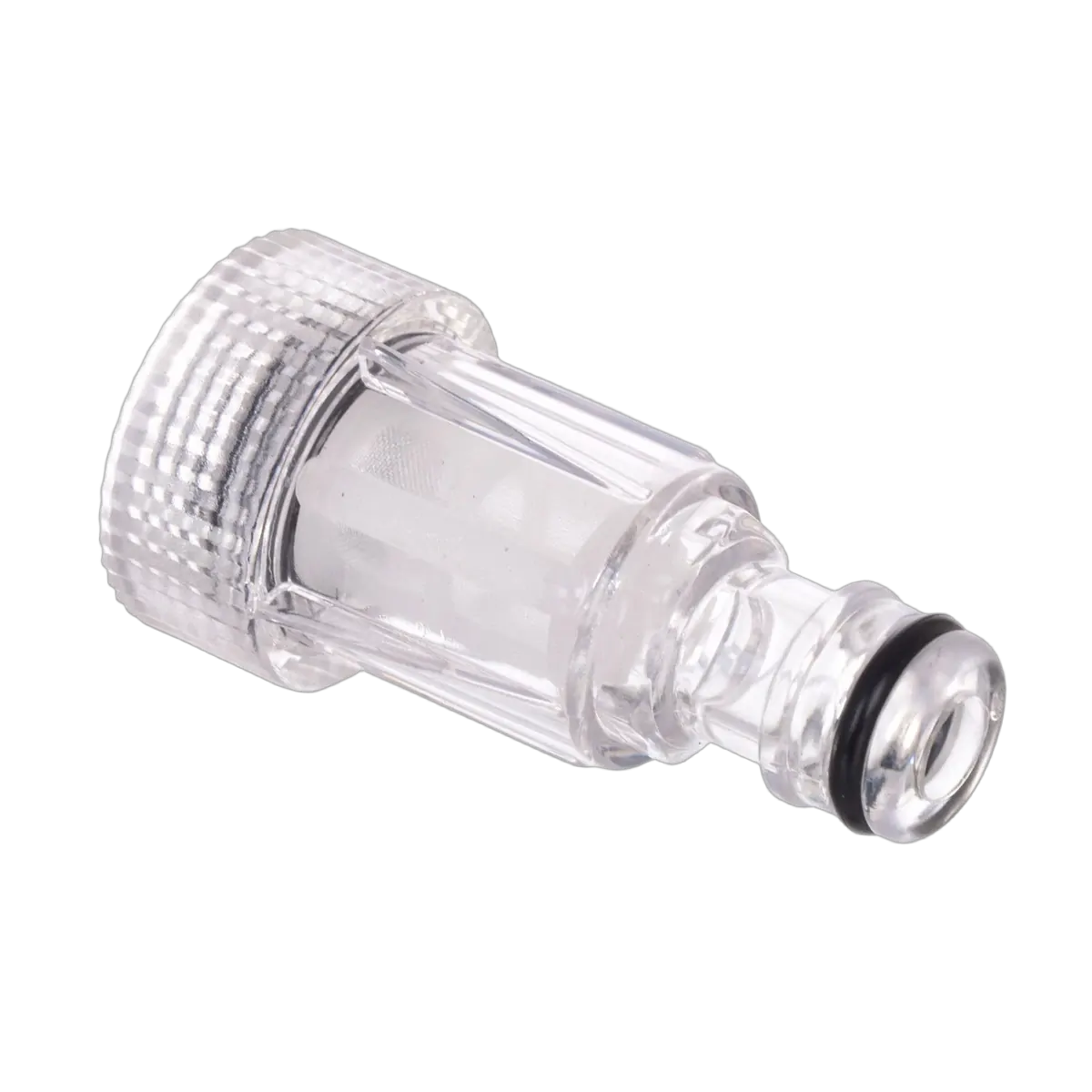 The integrated inlet filter safeguards the pump from debris, ensuring its longevity. The Quick Connect system simplifies accessory attachment with all brass fittings on the quick-connect lance and accessories.