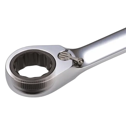 The Kincrome reversible gear spanner has all the benefits of standard spanners and more. The strong fine gear ratcheting ring end needs as little as 2.5° of sweep to move the fastener, a standard fixed ring end needs a minimum of 30°, or 12 times the area. Kincrome Gear Spanner ratcheting ring end has a Peripheral Drive™ configuration that virtually eliminates the rounding off of fasteners. The market leading narrow and thin head, combined with fine gear tooth design makes the Kincrome gear spanner suitable for working in tight and hard to access areas where a ratchet and socket will not fit. The reversible mechanism allows you to change the direction of the gears via the switch, and the 13° offset mimics the characteristics of a conventional combination spanner.