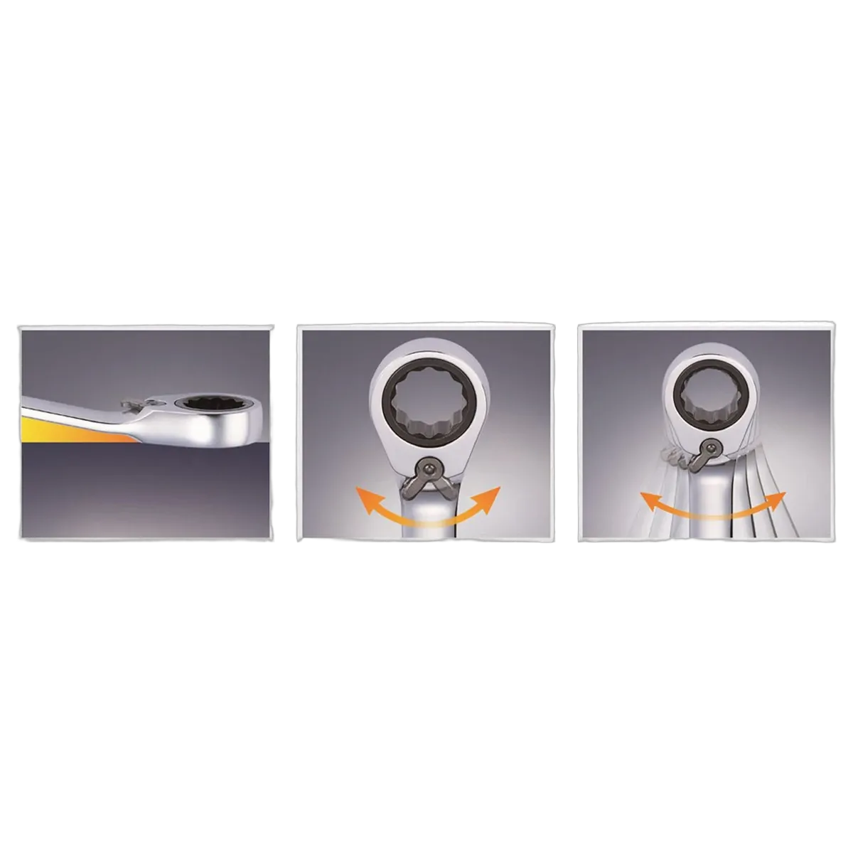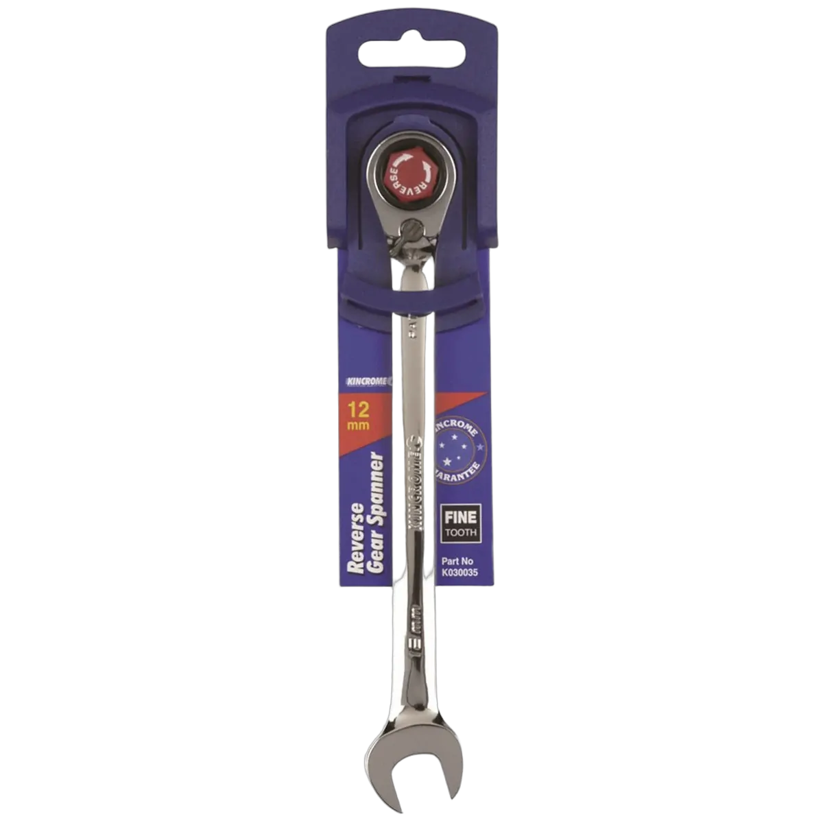 The Kincrome reversible gear spanner has all the benefits of standard spanners and more. The strong fine gear ratcheting ring end needs as little as 2.5° of sweep to move the fastener, a standard fixed ring end needs a minimum of 30°, or 12 times the are