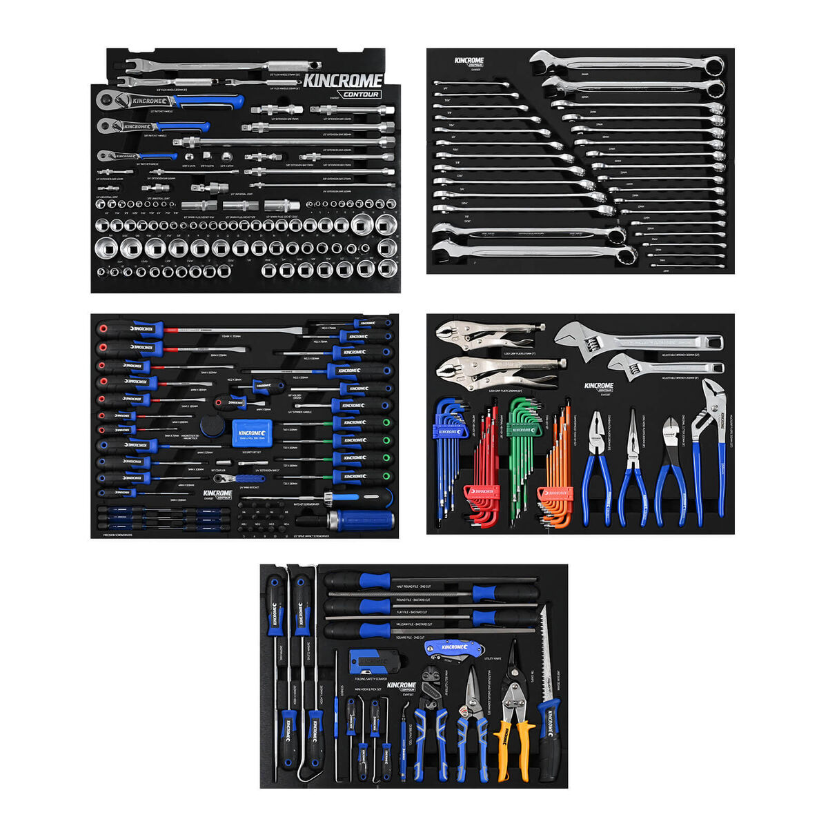 CONTOUR® storage comes standard with a range of premium features, including; the chamfered screen printed Kincrome side panels, ’Automatic Drawer Retention System (ADRS)’ locking system, heavy duty steel side handles, side folding work trays (including magnetic power boards), stainless steel worktops & heavy duty swivel castors for easy manoeuvrability.