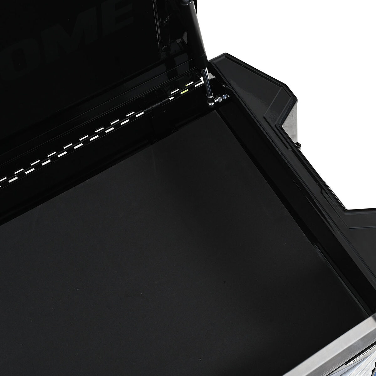 CONTOUR® storage comes standard with a range of premium features, including; the chamfered screen printed Kincrome side panels, ’Automatic Drawer Retention System (ADRS)’ locking system, heavy duty steel side handles, side folding work trays (including magnetic power boards), stainless steel worktops & heavy duty swivel castors for easy manoeuvrability.