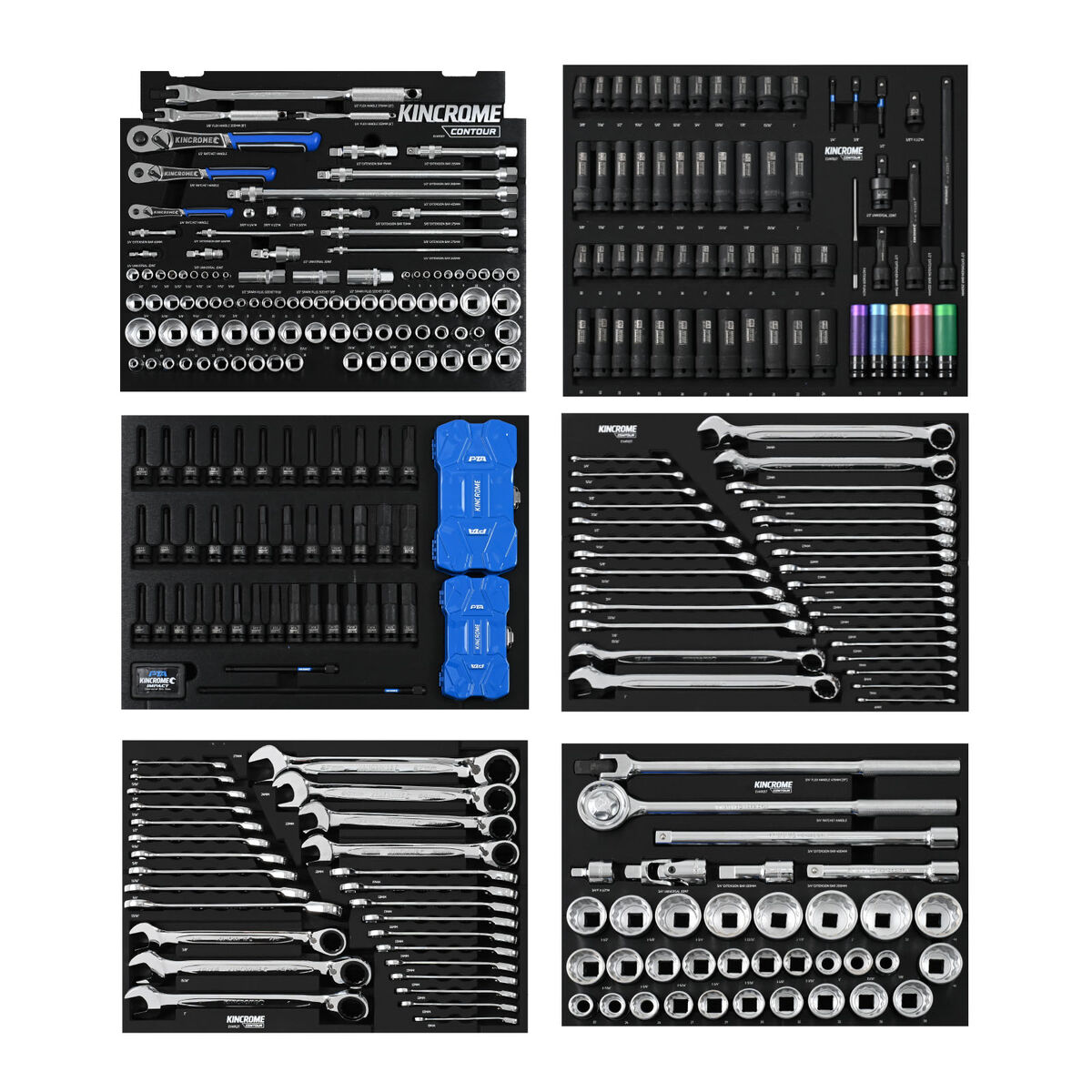 Designed in Australia by KINCROME, the CONTOUR® range features a sleek contoured design, available in either black or blue with a UV protected powder coated finish. CONTOUR® storage comes standard with a range of premium features, including; the chamfered screen printed Kincrome side panels, ’Automatic Drawer Retention System (ADRS)’ locking system, heavy duty steel side handles, side folding work trays (including magnetic power boards), stainless steel worktops & heavy duty swivel castors for easy manoeuvrability.