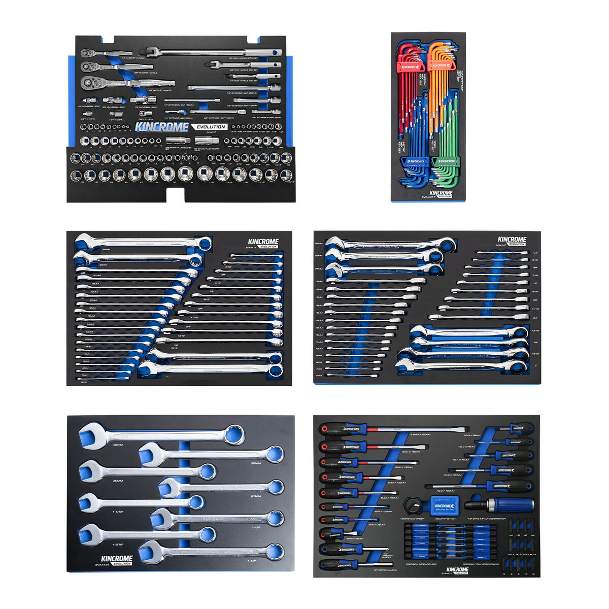 The EVOLUTION Range of Storage and Toolkits has been developed for the trade professional wanting value for money without compromising quality. EVOLUTION is loaded with premium features and trade tough tools for the professional user, but at a price not out of reach of the home user. Designed in Australia by Kincrome, the EVOLUTION range offers a storage or complete tool kit solution, for the serious home user, apprentice and trade professional.