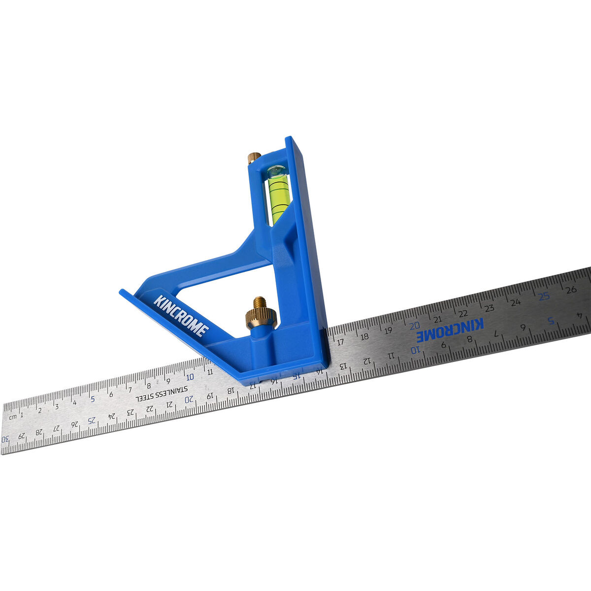The Kincrome Combination Squares include etched stainless steel blades with each 5cm increment in blue for easy identification. The Combination Squares also feature an easy read vial, brass hardware with the options of die cast and plastic versions available. It also has a convenient scriber pin with on-board storage, so you can measure and mark your job straight away