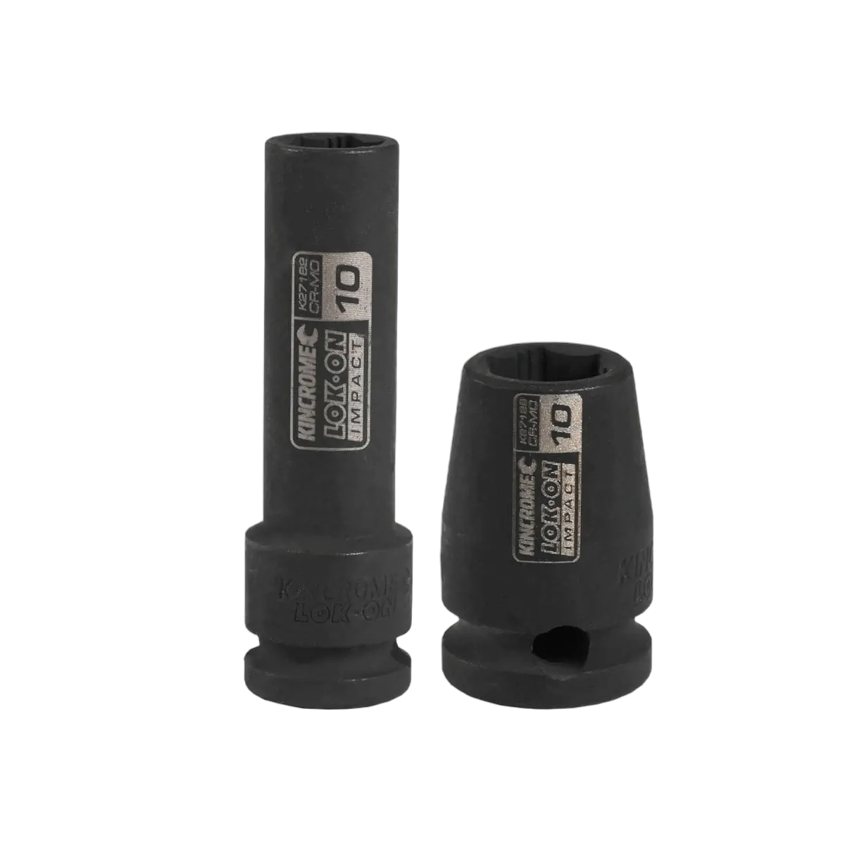 All LOK-ON™ Impact Sockets are manufactured from 42CrMo4. Chrome Molybdenum is an industrial grade material designed for impact and extreme torque applications. Standard 50bv30 CrV sockets are not designed for impact use and may shatter and cause per