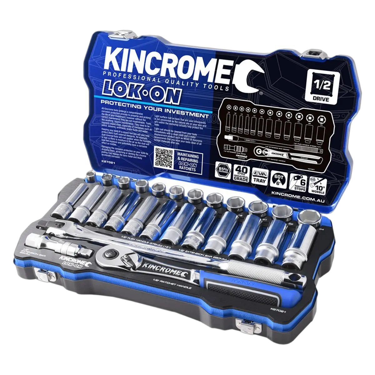• 12 LOK-ON™ 1/2” Drive Metric Deep Sockets: