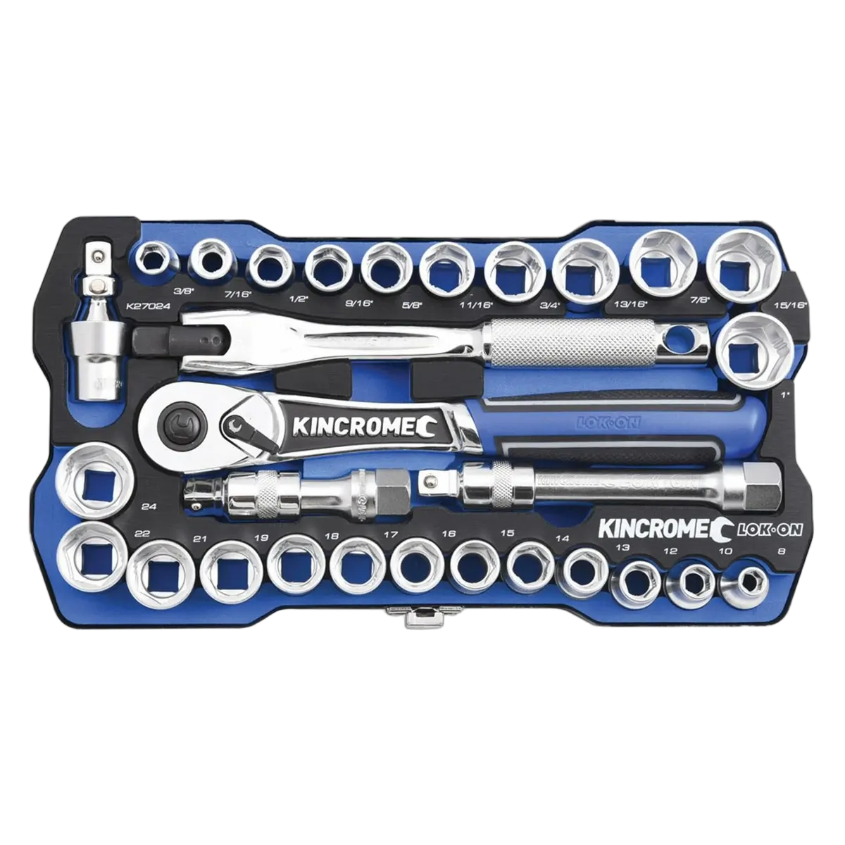 • 11 LOK-ON™ 1/2” Drive Imperial Sockets: