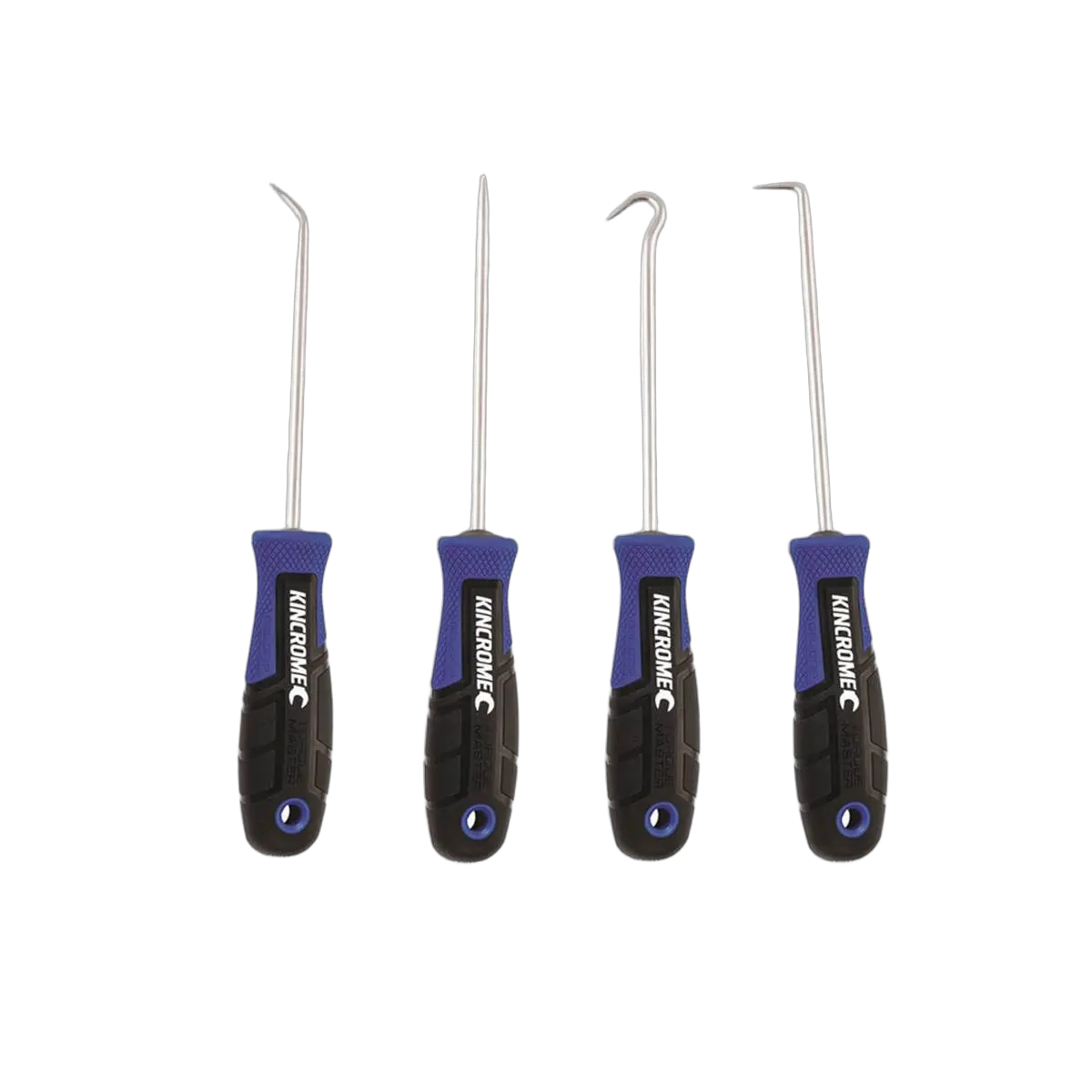 TorqueMaster® represents decades of fastening innovation. Incorporating a Tri-Lobe design that dovetails with the hand, and Gel-Grip for increased torque and turning power. The Kincrome Hook and Pick set is ideal for the removal of O' rings and rubber