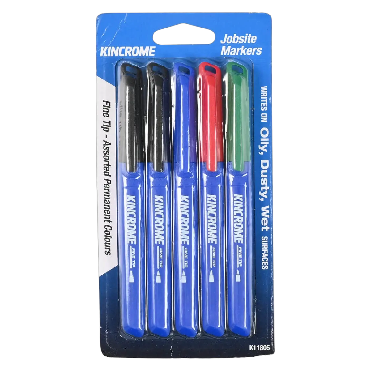 Kincrome Permanent Fine Tip Marker 5 Pack Assorted Colours