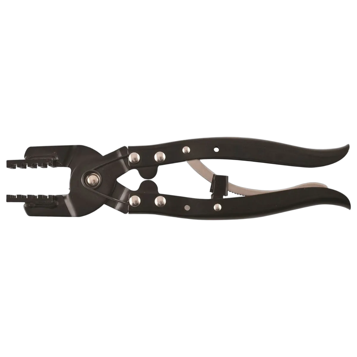 Hose clamp pliers make installing and removing flat band type Hose clamps in hidden and hard to reach areas easier