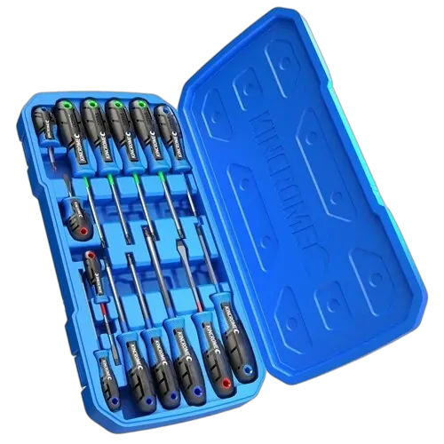 This 13 Piece set also includes a handy storage blow moulded case (BMC) to keep your screwdrivers together, and can act as a storage tray for your tool box simply by cutting the hinges to remove the lid.