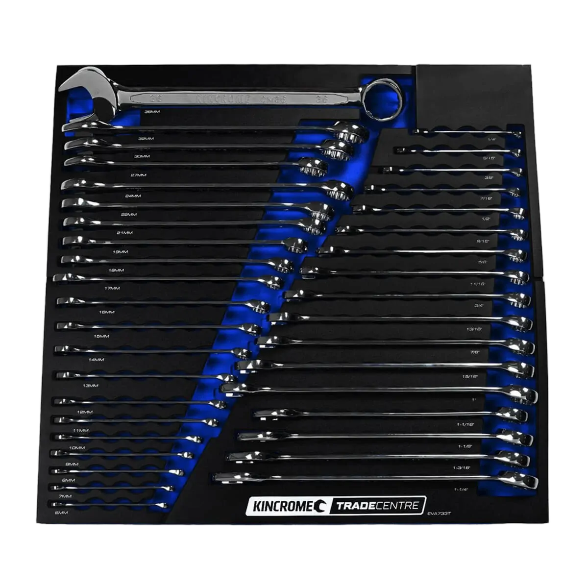 • 17 Combination Spanners: 6, 7, 8, 9, 10, 11, 12, 13, 14, 15, 16, 17, 18, 19, 21, 22, 24mm