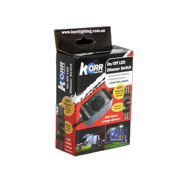 - On/off and brightness control for all Korr® camping & marine light products