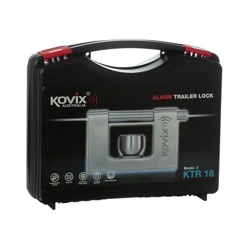 Designed by Kovix Australia, the heavy duty KTR-18 alarmed trailer lock is made from 304 grade stainless steel. Resistant to impact, drilling and cutting this ultra-strong trailer lock features an 18mm pin with an anti-cutting sleeve. Making the Kovix trailer lock the obvious choice for protecting your caravan from theft.