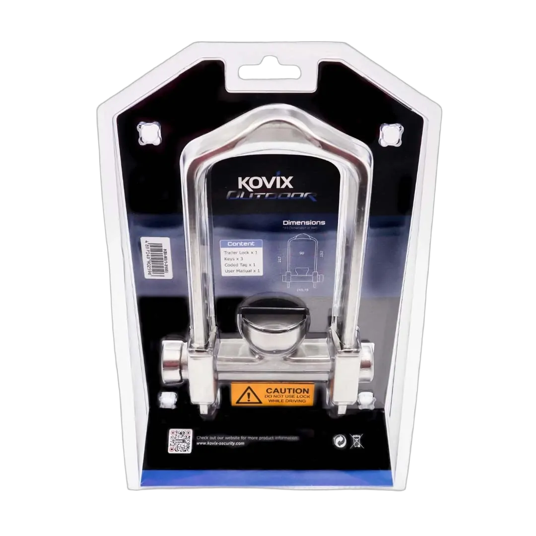Protect your trailer, boat or caravan with one of the most secure locks on the market. Constructed from Stainless Steel, this Kovix coupling lock will fit the trailer whilst connected to your vehicle or when it is detached.