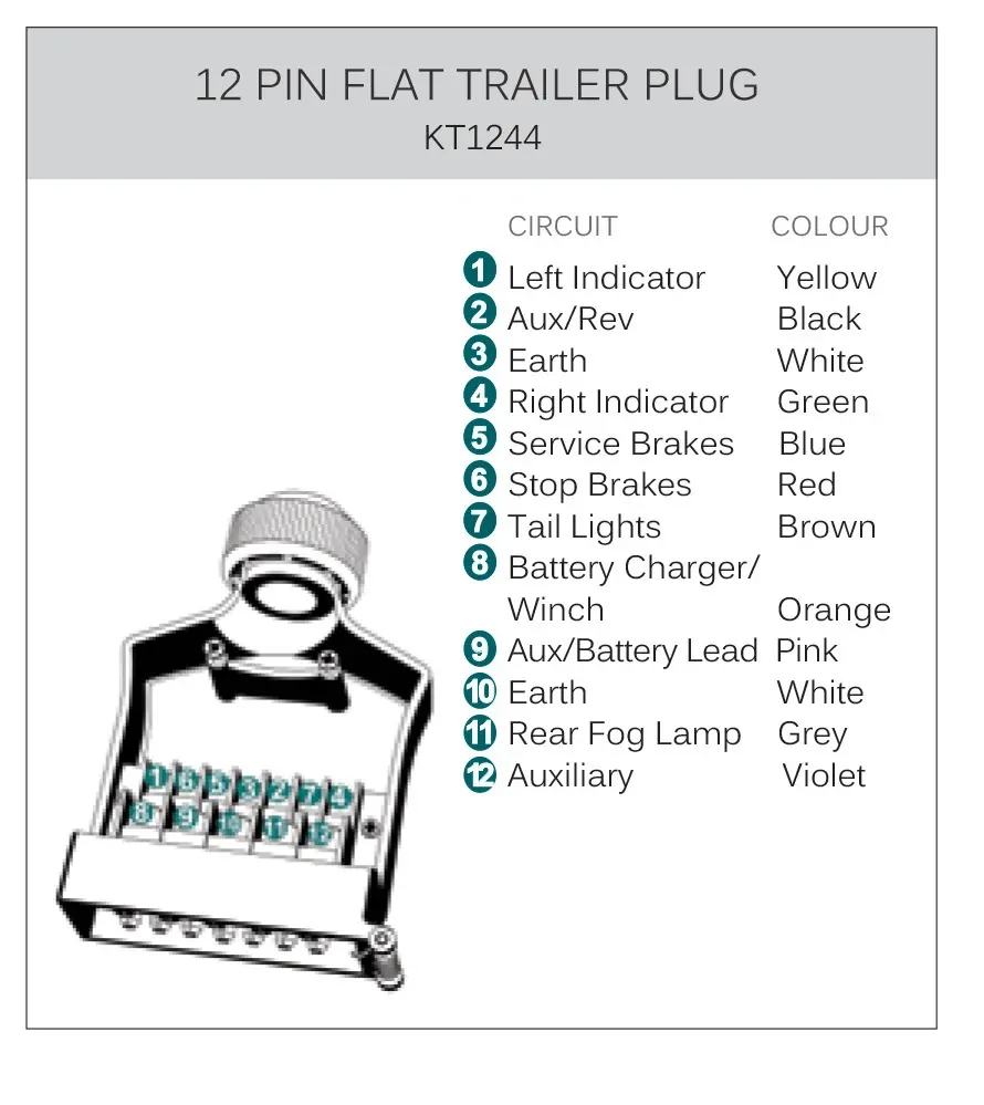 The KT 12 Pin Metal Trailer Plug (Model No.KT1244) is manufactured using quality alloy making this particular product popular towing solution in the 4×4 and trucking markets.