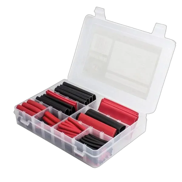 Heat Shrink Kit Assortment, 105 Pieces. Features a mix of xxmm heat shrink from 3mm to 25mm diameters in red and black.