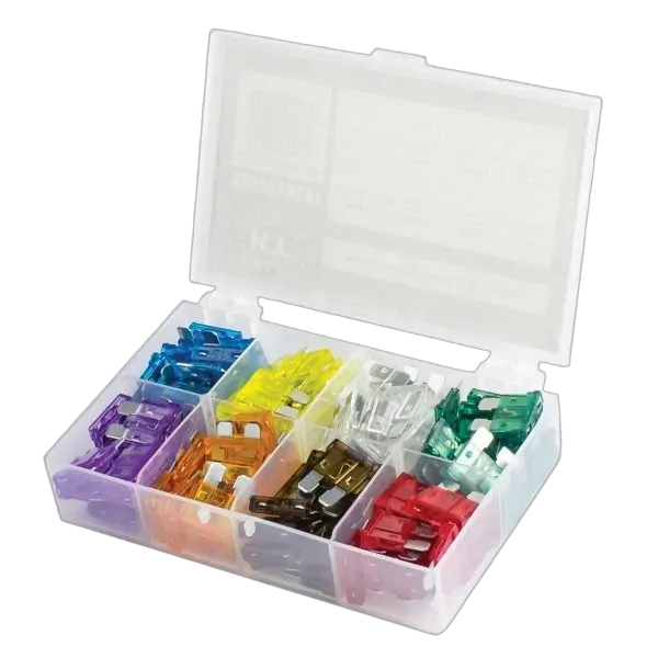 Blade Fuse Assortment Kit, 120 Pieces. Contains 120 standard ATS blade fuses from 3 to 30A