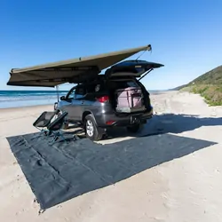Introducing the CGear L-Shaped Camper Mat - the ultimate camping companion designed specifically for adventurers with vans or utes! This L-shaped marvel is crafted to perfectly fit beside and at the back of your camper, providing a clean and comfortable outdoor space to access your vehicle wherever you roam.