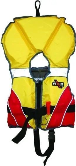100N foam inner life jackets that are very comfortable to wear and have an attractive safety colour combination of yellow and red nylon outer. Approved to Australian standard AS4758. Elasticized waist with zipper and adjustable buckled waist strap. Full padded collar to support the neck and head. Includes whistle, refl ective tape patches and snap-lock buckles. Child sizes includes a grab handle and crotch strap. Safety colour combination of yellow and red.